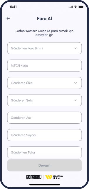 - “Western Union” seçeneğini seç.